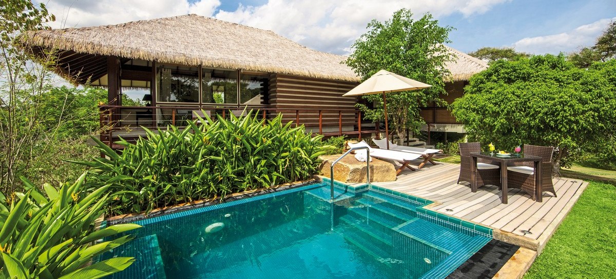 Im Uga Ulagalla wohnt Ihr in freistehenden Villen mit eigenem Pool und viel Privatsphäre. Das Ambiente wirkt naturnah und gepflegt, mit Wegen durch Gärten, einem biologischen Anbau und einer Solarfarm. Ihr erlebt Ruhe zwischen Aktivitäten wie Yoga, Kochkursen oder Safaris. Highlight: LEED-zertifizierte Villen setzen konsequent auf umweltbewusste Bauweise.