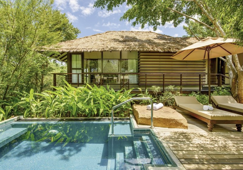 Ihr wohnt in 25 Pool-Villen mit Privatpool und Terrasse. Der großzügige Wohn- und Essbereich trifft auf ein Kingsize-Bett; Klimaanlage, TV, Telefon, Minibar, Safe, WLAN und Kaffee-/Teezubereiter sind an Bord. Private Fahrräder stehen bereit. Highlight: Villen mit privatem Pool für unabhängige Tagesgestaltung.