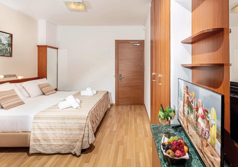 Sportlich geht es auch nebenan weiter: Beim Hotel Excelsior, etwa 50 Meter entfernt, wartet ein Mehrzweckplatz sowie ein Tennis-Sand- und ein Hartplatz. Abends bleibt es angenehm ruhig; in den Daten sind keine Shows vermerkt. Ihr gestaltet Eure Abende flexibel – am Strand, auf der Terrasse oder im Ort.