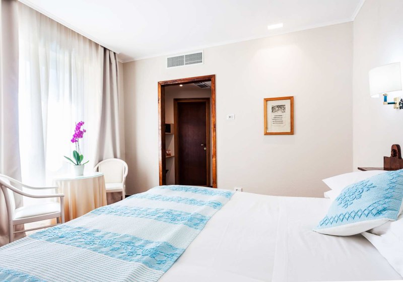 Ihr wählt Doppelzimmer mit etwa 16 bis 20 Quadratmetern, teils mit seitlichem oder direktem Meerblick. Ausstattungsdetails wie Klimaanlage, Heizung, Safe, Minibar, Sat-TV, WLAN sowie Bad mit Dusche oder Badewanne, WC und Haartrockner sorgen für Klarheit im Alltag. Deluxe-Varianten erweitern um Balkon oder Terrasse für frische Luft und Meergeräusche.