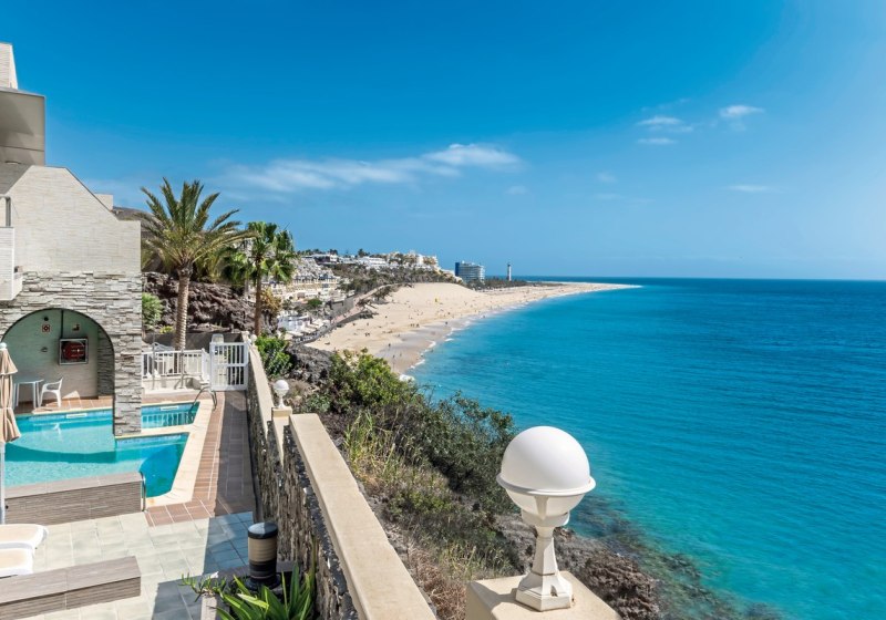 Die Lage in Morro Jable auf Fuerteventura ist ein klarer Vorteil: erhöht auf einem Felsen am Meer und mit durchgängigem Meerblick. Den feinen Sandstrand erreicht Ihr nach etwa 300 Metern. Zu Einkaufs- und Unterhaltungsmöglichkeiten sowie Restaurants und Bars sind es rund 800 Meter, wodurch Ihr zwischen Ruhe und Abwechslung flexibel wechselt. Der Flughafen liegt etwa 85 Kilometer entfernt.