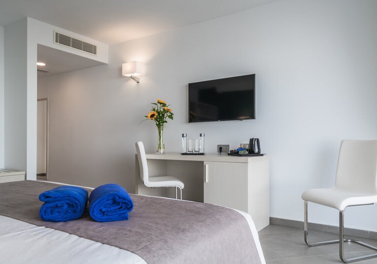 - Meerblick-Option: Doppelzimmer teils mit eingeschränktem Meerblick.