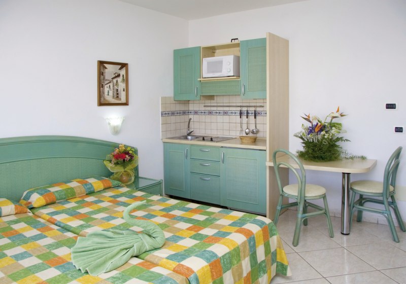 Praktisch: Wer gern selbst kocht, nutzt Kitchenette oder Kochecke in den Apartment- und Studiokategorien und kauft direkt im Supermarkt der Anlage ein. So kombiniert Ihr Restaurantbesuch und Selbstversorgung nach Tagesplan. Highlight: Restaurant, Bar und Supermarkt erlauben flexible Verpflegung, inklusive Halbpension.