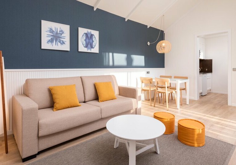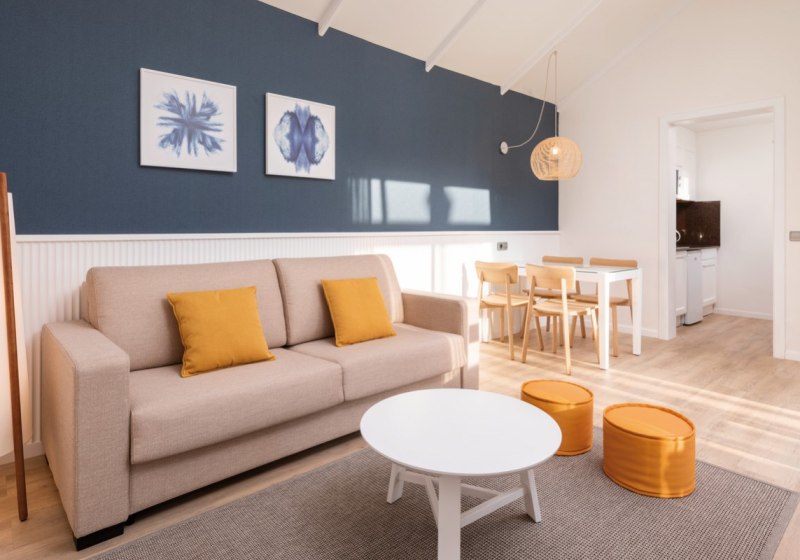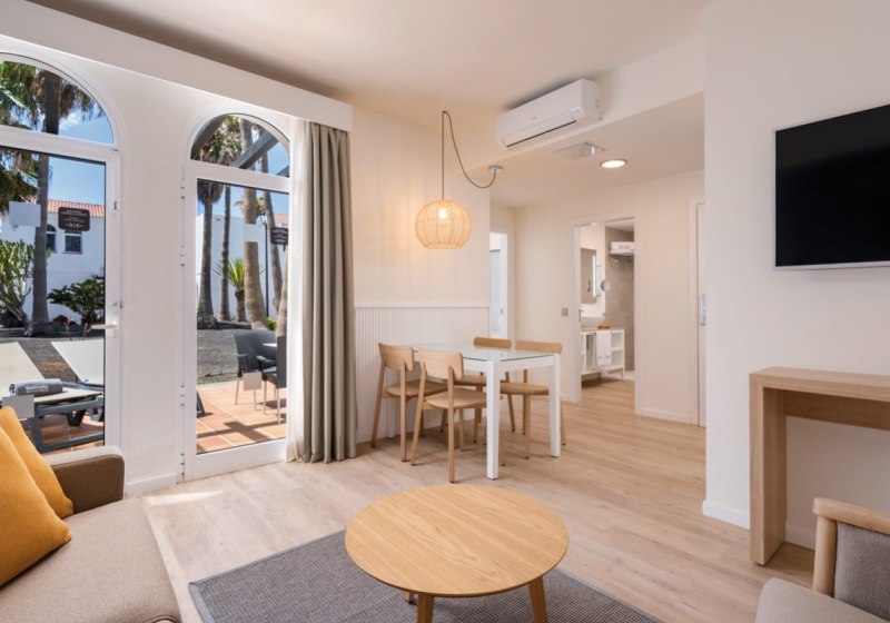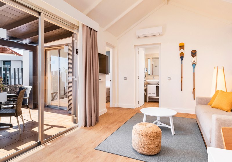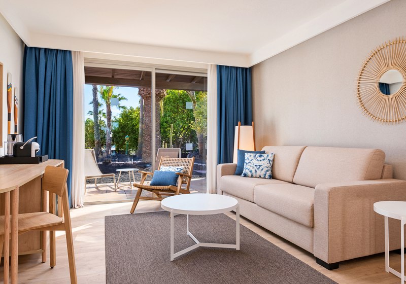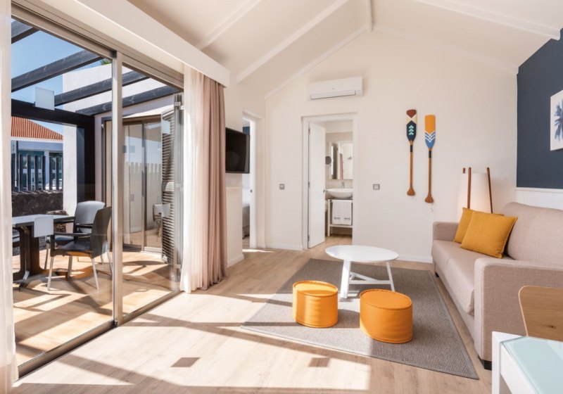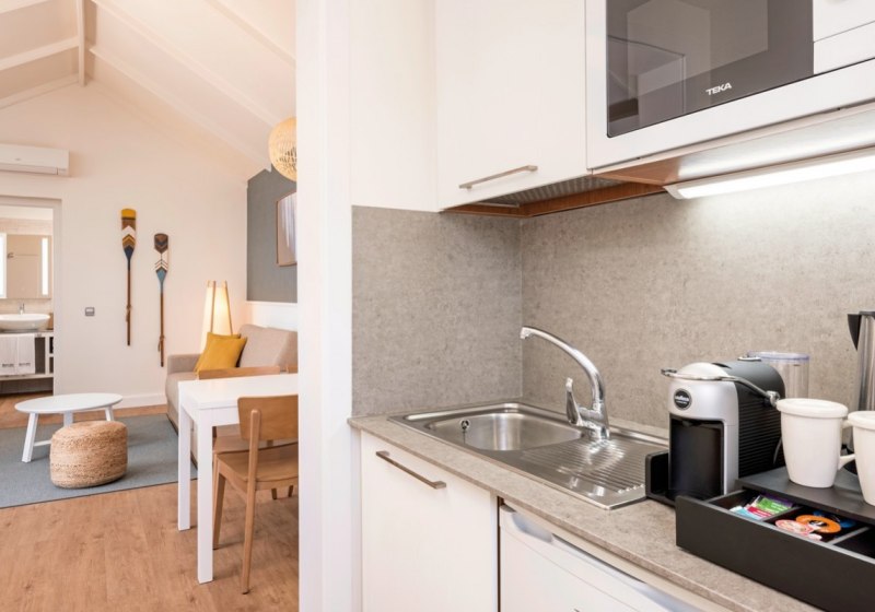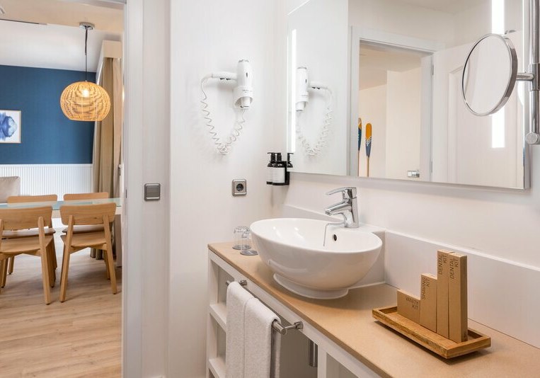 Teilweise gibt es separate Schlafzimmer für mehr Rückzug. Die Juniorsuite liegt im Erdgeschoss und bietet Terrasse mit Whirlpool – ideal nach Strand, Pool oder Thalasso. Details wie Telefon und durchdachte Grundrisse runden das Bild ab. Highlight: Bungalows mit Kitchenette bieten echte Unabhängigkeit im Tagesrhythmus.
