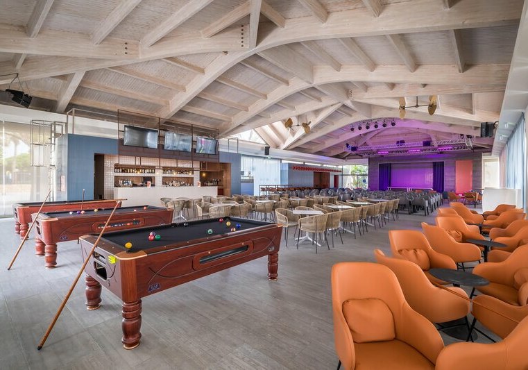 Für flexible Mobilität stehen Fahrrad- und Mietwagenverleih parat, Parkplätze sind vorhanden. Ein Theatersaal, verschiedene Bars inklusive Lobby- und Poolbar sowie Shops und Supermarkt ergänzen die Infrastruktur. Highlight: Vier klar getrennte Poolzonen verteilen die Gäste angenehm über das Gelände.