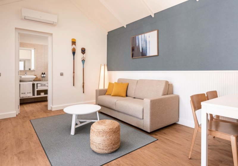 Ihr übernachtet in Einheiten mit individuell regulierbarer Klimaanlage, Flachbild-Sat-TV, WLAN und Mietsafe. Balkon oder Terrasse, Bad mit Dusche oder Badewanne sowie Föhn sind Standard. Bungalows bringen eine Kitchenette mit Mikrowelle, Wasserkocher und Kühlschrank für flexible Abläufe.