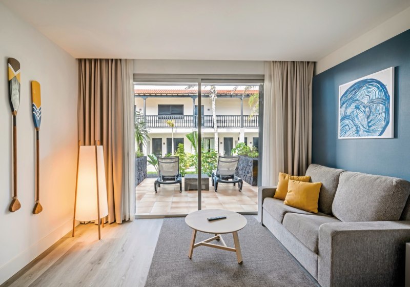 Zwischen Sonnenterrassen und mehreren Poolbereichen ordnet sich der Tag fast von selbst: morgens an den 800 Meter langen Sandstrand, später im Theater am Hafen eine Show oder Live-Musik. Ihr wählt zwischen Bungalows mit Kitchenette oder geräumigen Juniorsuiten im Erdgeschoss mit Terrasse und Whirlpool. Highlight: Direktlage am langen Sandstrand mit kurzer Anreise ab Flughafen.
