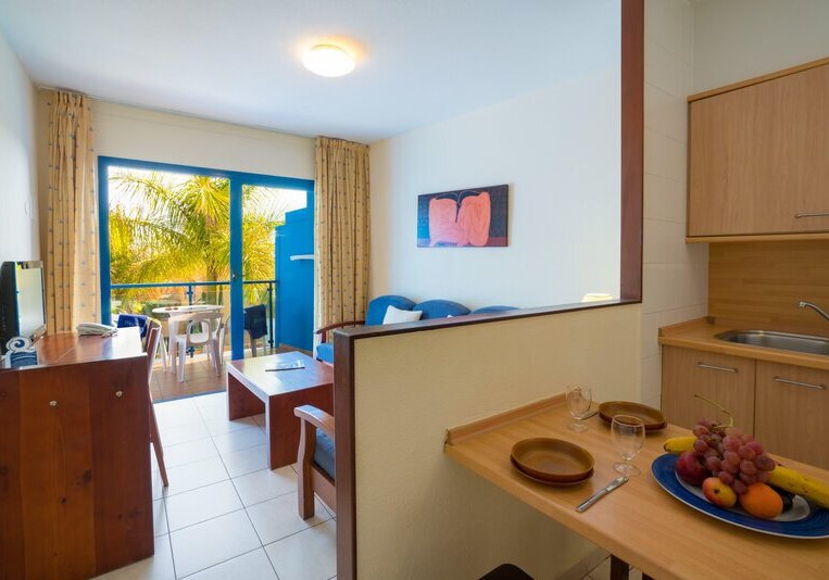 Im BLUESEA Jandia Luz wohnt Ihr in unkomplizierten Appartements, nur wenige Schritte von der Playa de Jandía entfernt. Die Anlage wirkt übersichtlich und angenehm entspannt: ein Außenpool, eine sonnige Terrasse mit Liegen und Schirmen, dazu WLAN in allen Bereichen ohne Aufpreis. Ihr richtet Euch dank Kitchenette selbstbestimmt ein und gestaltet Eure Tage nach eigenem Rhythmus. Highlight: Strandnahe Apartmentanlage mit Pool und Gratis-WLAN für flexible Tage.