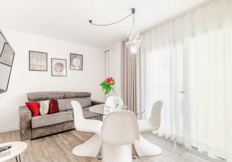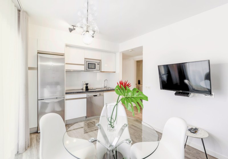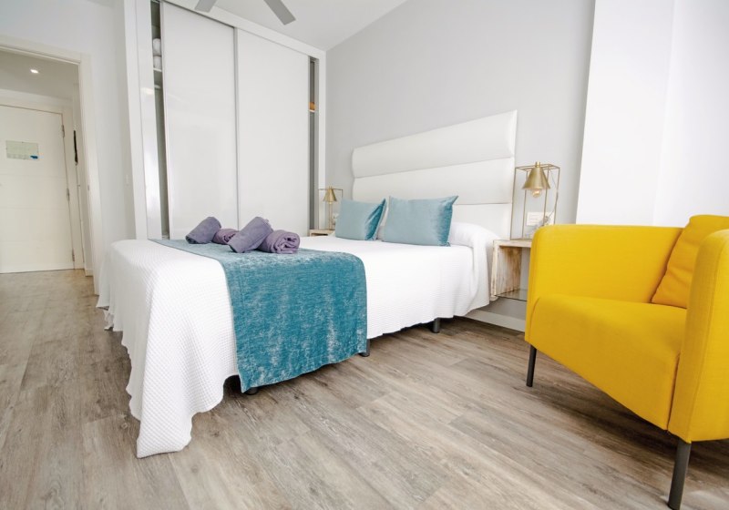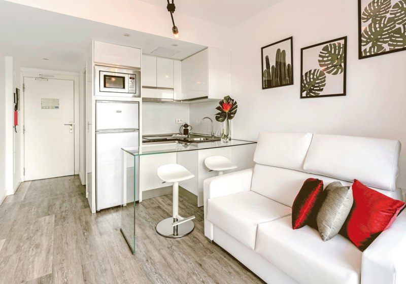 Ihr wohnt in Juniorsuiten ab etwa 38 Quadratmetern – mit kombiniertem Wohn- und Schlafraum, einem offenen Küchenbereich und separatem Schlafzimmer. Der möblierte Balkon oder die Terrasse erweitert den Raum nach draussen. Das klare Design stützt den funktionalen Charakter für kurze und längere Aufenthalte.