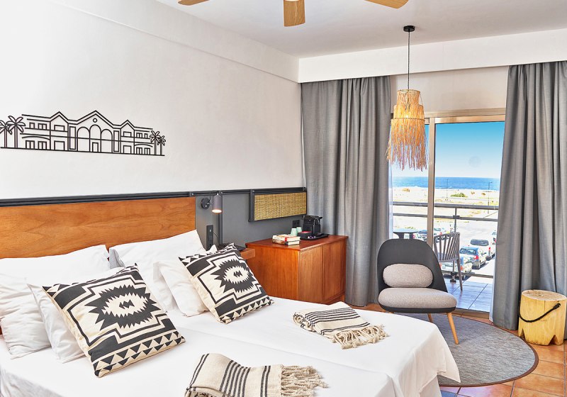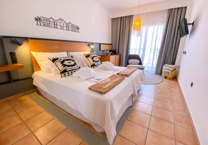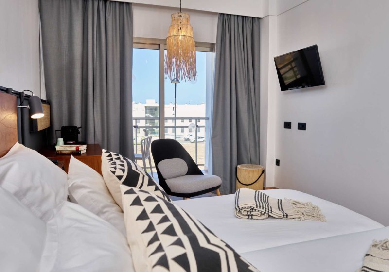 Im Coral Cotillo Beach Hotel wohnt Ihr in einem modernisierten Haus mit zwei Etagen und klarer Struktur, behutsam renoviert im Jahr 2021. Die ruhige Lage in El Cotillo setzt den Ton: entspannt, freundlich, ohne Hektik. Familien fühlen sich mit Kinderpool, Miniclub und viel Platz wohl, Aktivreisende nutzen Fitnessraum, Padel-Platz und Kletterwand. Strandliebhaber schätzen die kurze Distanz zum Meer und die Aufbewahrung für Surfbretter.