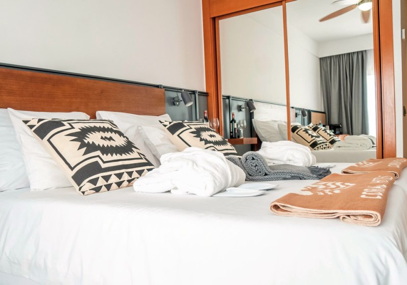Bar, Poolbar, Dachterrasse, Bibliothek und Außenmöbel geben Eurem Tag Struktur, vom ersten Kaffee bis zum späten Drink. Verleihangebote wie Mietwagen, Fahrräder oder E‑Roller halten Euch flexibel. Praktisches Plus: Konferenzraum, Arztservice, Badetücher, Weckdienst und Geldautomat. Das Haus ist Nichtraucher, haustierfrei und setzt auf umfassende Nachhaltigkeit – von Energieeffizienz bis Travelife-Zertifizierung.