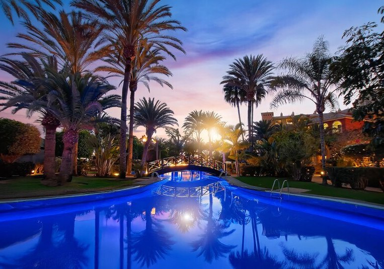 - Weitläufige Anlage: 32.000 m² Gärten, zwei Pools und Sonnenterrassen.