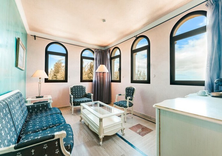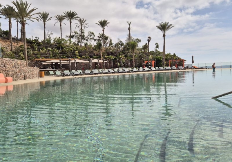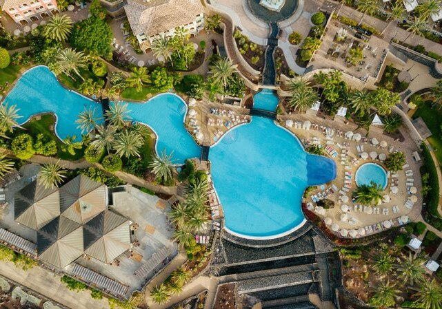 Mit 416 Zimmern, Empfangshalle, Aufenthalts- und Spielräumen sowie Konferenzbereichen vereint das Haus Urlaubs- und Businessansprüche. Das Ambiente wirkt weitläufig, ohne unpersönlich zu sein: Wege durch Gärten und über Terrassen führen Euch zu Bars, Buffet- und À-la-carte-Restaurant. Pooltücher erhaltet Ihr gegen Kaution, der Wechsel ist gebührenpflichtig. Vor dem Hotel parkt Ihr nach Verfügbarkeit kostenfrei; Haustiere sind nicht erlaubt, Rauchen ausschließlich auf dem Zimmerbalkon. Highlight: Großzügige Garten- und Poollandschaft mit Meerblick, terrassenförmig über dem Atlantik angelegt.