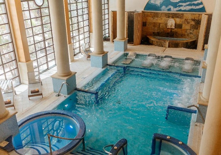 - Spa: Sauna, Dampfbad, Hallenbad und Whirlpool im Wellness-Center.