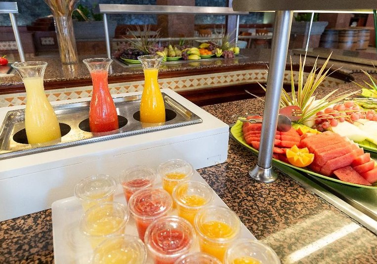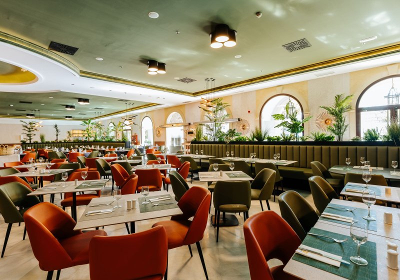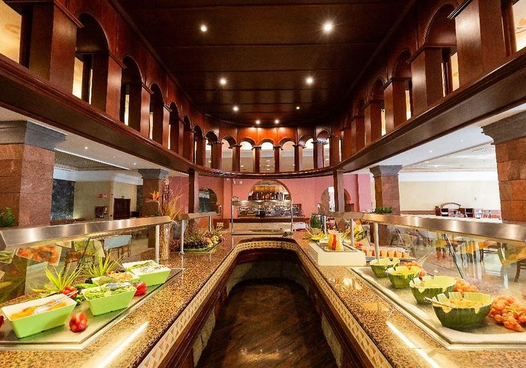 Im Buffetrestaurant erwartet Euch eine breite Auswahl mit Live-Kochen; ergänzend speist Ihr im À-la-carte-Restaurant. Bars, Café, Poolbar, Pub und Snackbar verteilen die Genussmomente über den Tag. Verpflegungsoptionen reichen von Frühstück über Halb- und Vollpension bis All Inclusive, glutenfreie Mahlzeiten sind verfügbar.