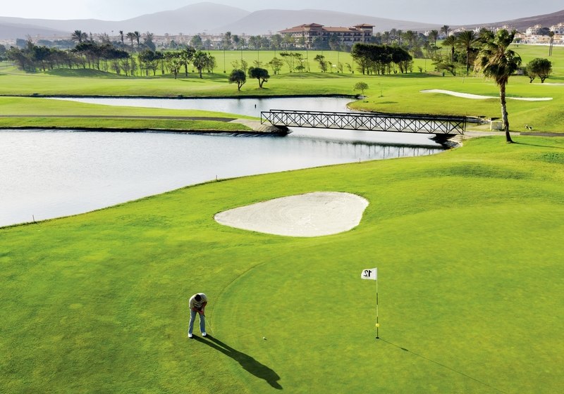 Ihr residiert im Golfgebiet bei Caleta de Fuste. Die Badebucht Playa El Castillo erreicht Ihr nach etwa 2 Kilometern, den Flughafen nach rund 9 Kilometern. Ein hoteleigener Shuttleservice bringt Euch nach Caleta de Fuste sowie zum Einkaufszentrum, ideal für spontane Abstecher zwischen Strand, Shopping und entspannten Runden auf dem Platz.