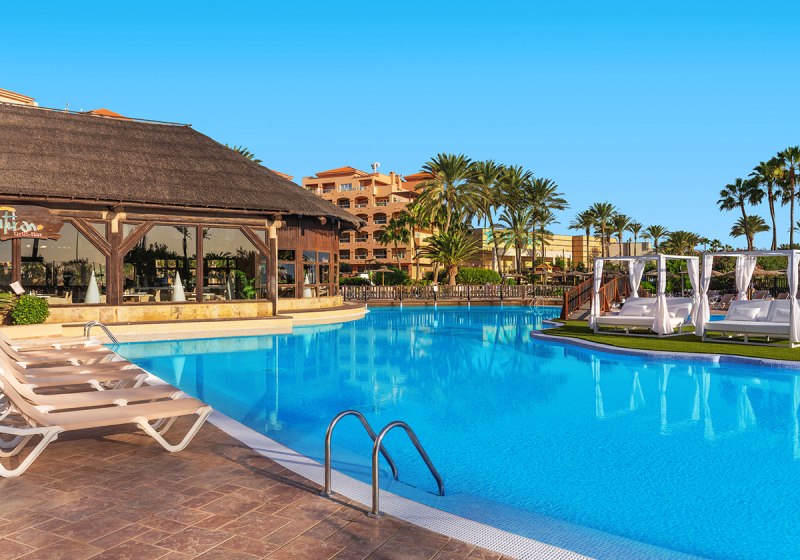 An den zwei Außenpools – einer davon im Winter beheizbar – schwimmt Ihr mit Blick auf Palmen, während die Kleinen im separaten Kinderpool planschen. Kurze Wege führen Euch zum Sandstrand Playa El Castillo. Für Abwechslung sorgen der nahe 18-Loch-Golfplatz und ein strukturierter Tagesablauf mit Animation, Miniclub und entspannten Stunden an der Promenade.