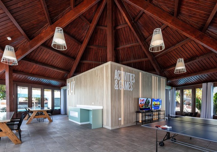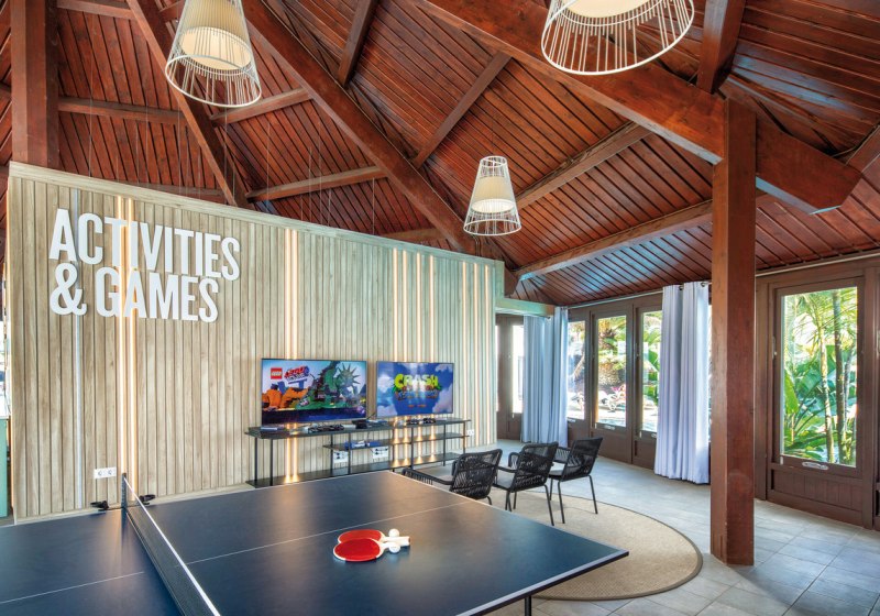 Die große Poollandschaft mit drei Swimmingpools und ein separates Kinderbecken mit Piratenschiff prägen das Bild. Tagsüber bleibt die Atmosphäre entspannt, abends wird es durch Programm und Livemusik lebendiger. Wer in den Ferien kurze Wege schätzt, nutzt Restaurants, Bars und die Sportsbar direkt im Resort.