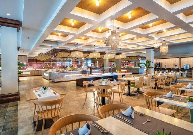 Im Resort stehen Restaurant und mehrere Bars bereit, darunter zwei Poolbars und eine Lobbybar. Ihr wählt zwischen Frühstück, Halbpension, Vollpension, All‑Inclusive und All‑Inclusive Plus. Alkoholfreie und alkoholische Getränke, Snacks und Kindermenüs sind je nach gebuchter Verpflegung integriert.