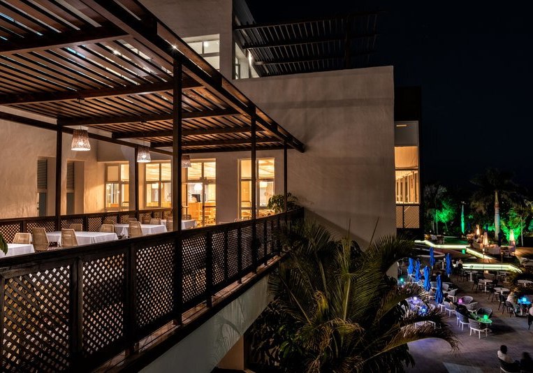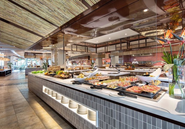 Im Außenbereich erwartet Euch eine große Poollandschaft mit Liegewiese, Sonnenterrassen, Liegestühlen, Sonnenschirmen und Badetuchservice. Bali‑Betten (18) setzen Akzente. Theater‑ und Banketträume sowie Konferenz- und Coworking‑Optionen runden das Angebot ab.
