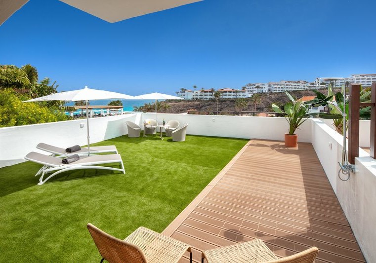 Im Fuerteventura Princess wohnt Ihr in einem 4‑Sterne‑Resort oberhalb des Strandes von Playa de Esquinzo. Die Anlage entstand 2000, wurde 2019 renoviert und wirkt dank weitläufiger Wege und gepflegter Zonen angenehm übersichtlich. Familien, Paare und Strandliebhaber finden hier einen direkten Zugang zum Meer über einen leicht abfallenden Weg.