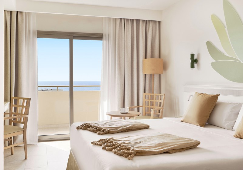 In den 206 Nichtraucherzimmern erwartet Euch eine klare, praktische Ausstattung: zentral gesteuerte Klimaanlage, Sat-TV, WLAN, Telefon, Safe, Minibar und Wasserkocher. Dusche oder Badewanne mit Föhn, Fliesenboden sowie Balkon oder Terrasse ergänzen den Komfort. Teilweise genießt Ihr Meerblick, je nach gebuchter Kategorie.