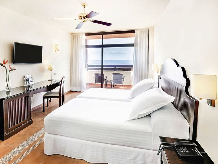 Im Occidental Jandía Mar wohnt Ihr in erhöhter Hanglage mit weitem Blick über Jandía. Die großzügigen Gemeinschaftsbereiche wirken klar strukturiert und angenehm weitläufig. Familien fühlen sich dank Splashpark, Miniclub und Kinderpool gut aufgehoben, Paare schätzen die ruhigen Zonen. WLAN im gesamten Hotel hält Euch überall verbunden.