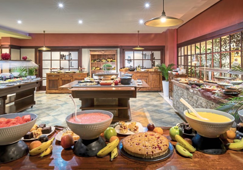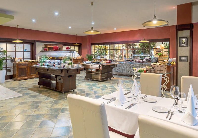 Im Buffetrestaurant esst Ihr vielfältig und flexibel; Live-Kochen setzt frische Akzente. Ein À-la-carte-Restaurant ergänzt die Auswahl. Kindermenüs und glutenfreie Optionen sind verfügbar. Je nach Buchung nutzt Ihr Frühstück, Halbpension oder All-Inclusive mit Snacks sowie alkoholfreien und alkoholischen Getränken.
