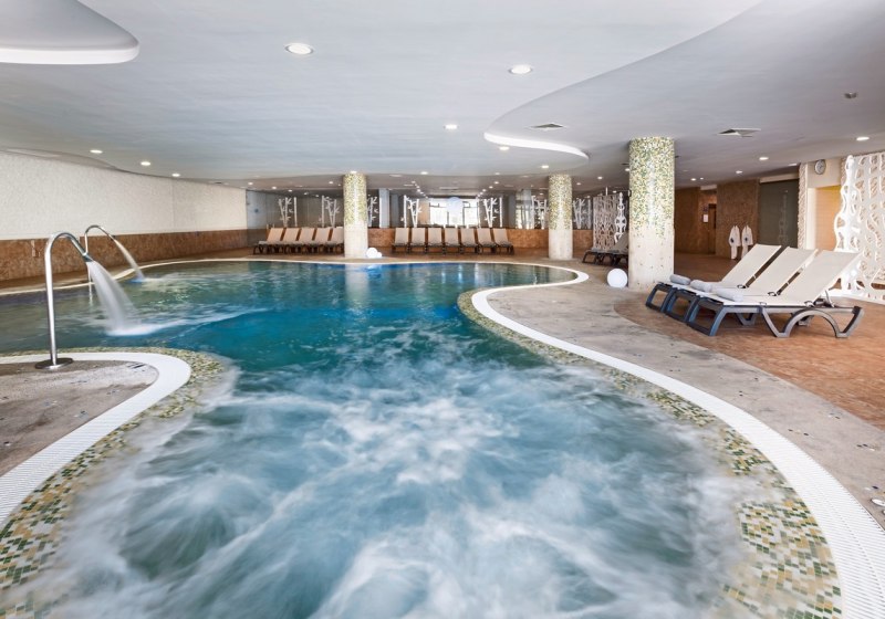 - Spa: Beheiztes Innenbecken mit Hydromassage und strukturierte Ruhebereiche.