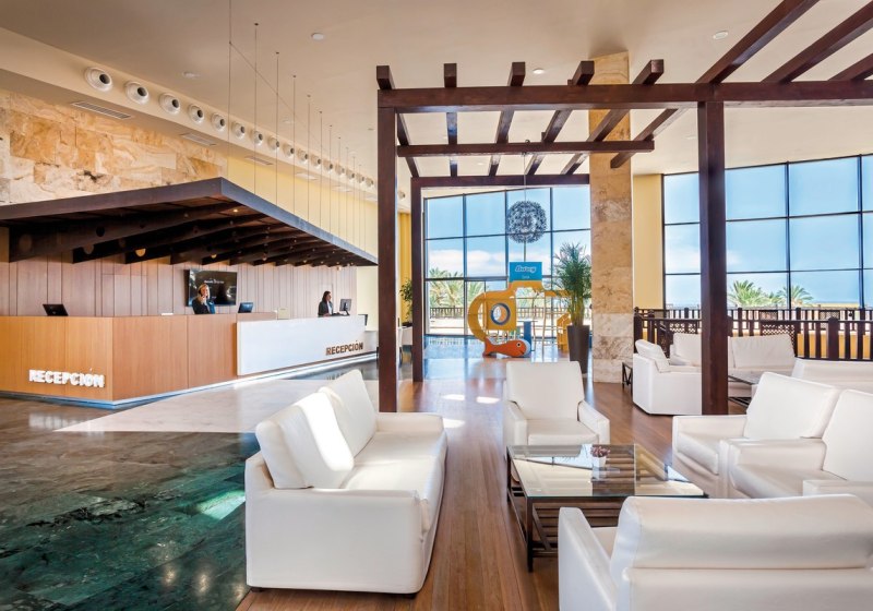 Die Empfangshalle mit Rezeption bildet den Mittelpunkt, von dem Wege zu Pools, Terrassen und Bars abgehen. WLAN im gesamten Hotel, Souvenirshop und weitere Services sorgen für einen reibungslosen Ablauf. Die Gemeinschaftsbereiche sind weitläufig angelegt, mit klaren Bewegungsachsen und ruhigen Sitzzonen.