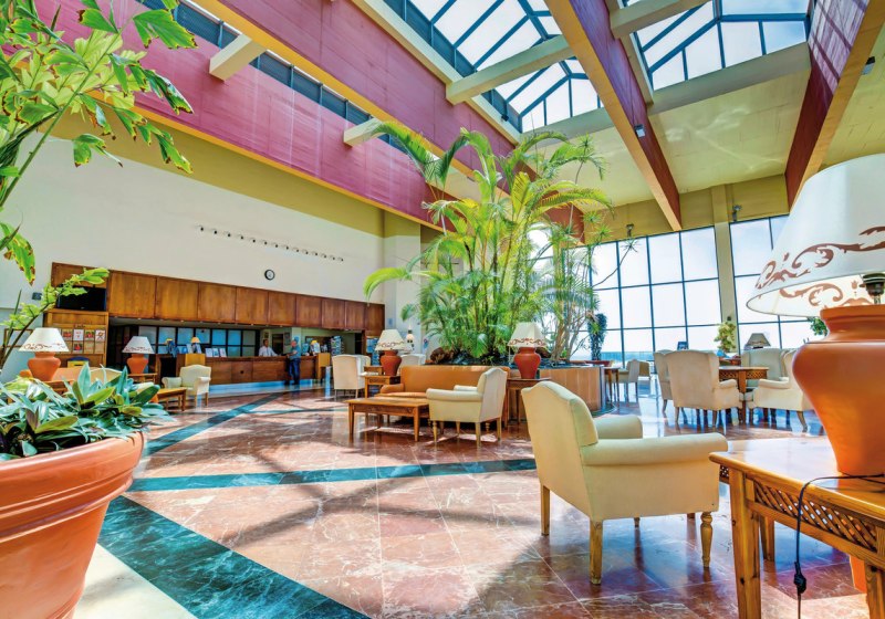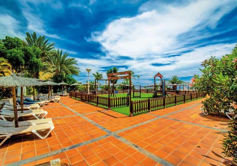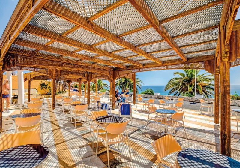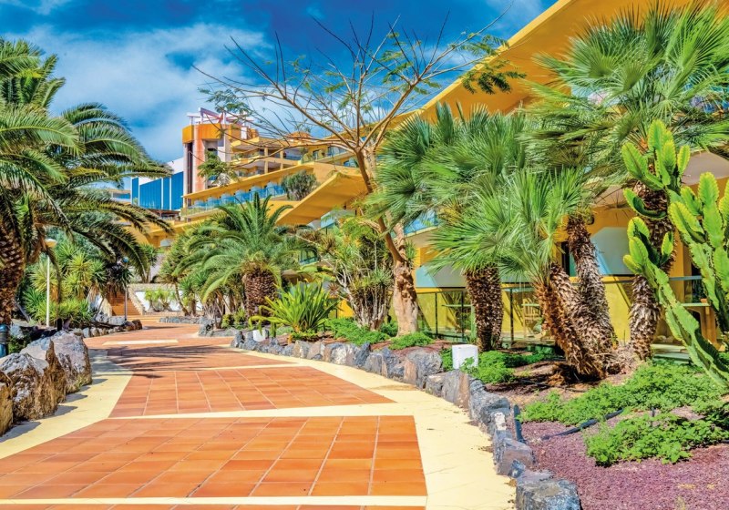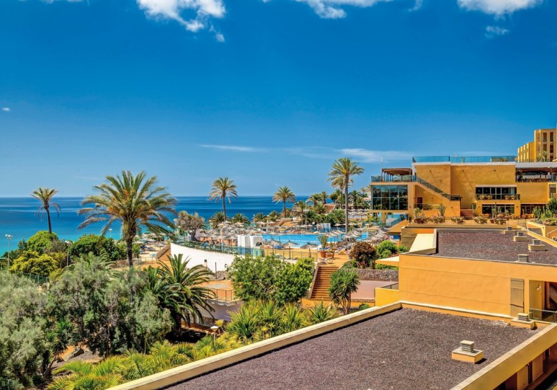 Familien findet Ihr mit Miniclub und Teen-Club gut aufgehoben, Aktive mit Fitnessraum und Sportprogrammen von Aerobic bis (Beach-)Volleyball. Für entspannte Abende gibt es eine Bar-Diskothek und Live-Musik im Theatersaal. Die Anlage bietet 317 Zimmer, Lifte und WLAN in den öffentlichen Bereichen kostenfrei. Highlight: Panoramalage über dem Esquinzo-Strand mit direktem Treppen-Zugang.