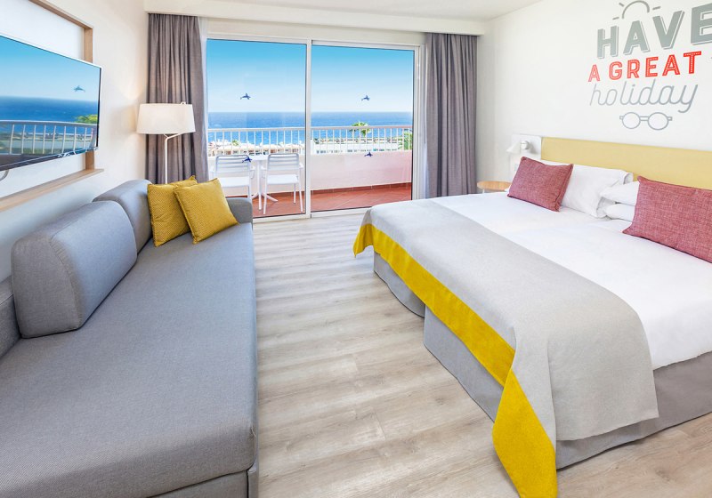 Die Doppelzimmer (ca. 28 m²) sind mit Klimaanlage, Sat-TV, Telefon, kostenlosem WLAN, Mietsafe, leerer Minibar, Dusche/WC und Föhn ausgestattet; Balkon oder Terrasse gehört dazu. In der Deluxe-Variante kommt eine Nespresso-Kapselmaschine hinzu. Familienzimmer (ca. 38 m²) bieten zusätzliche Schlafgelegenheit für mehr Platz.