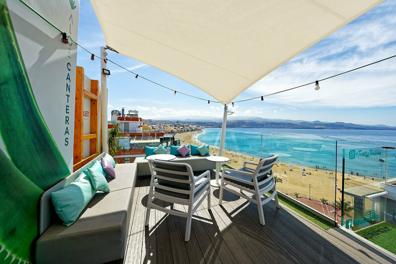 - Oben ankommen: Dachterrasse als ruhiger Rückzugsort über den Straßen von Las Palmas.