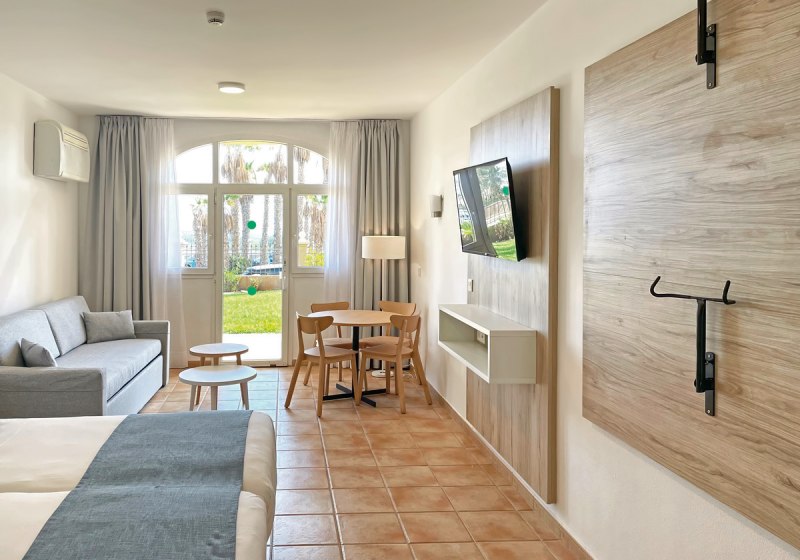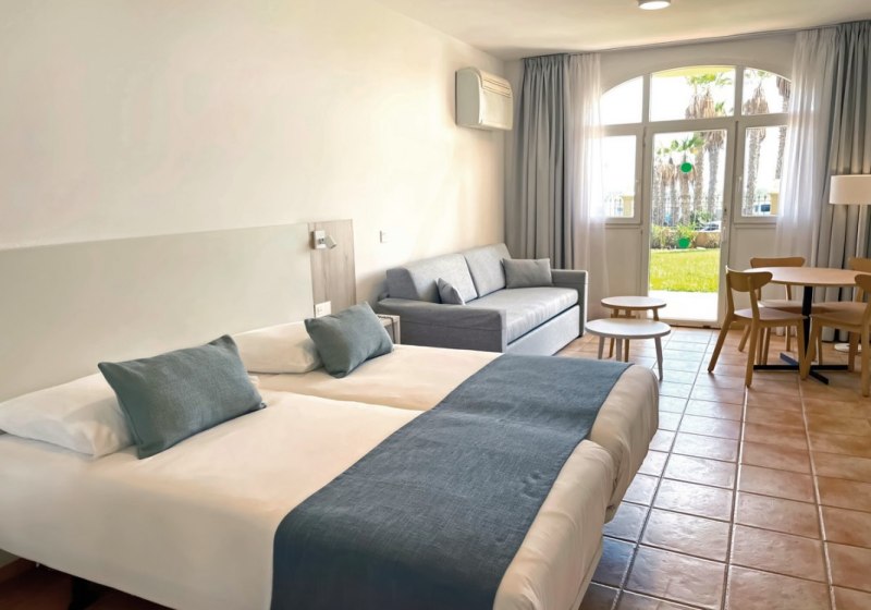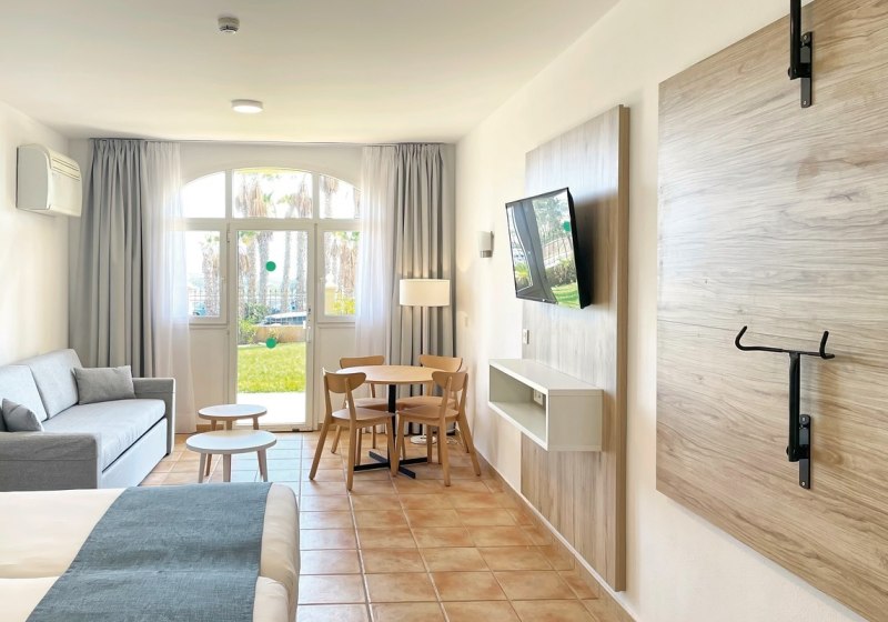 Sport Hotel Monte Feliz - powered by Playitas bündelt sportliche Infrastruktur, familienfreundliche Bereiche und flexible Verpflegung in klarer Form. Ihr wohnt in Studios oder Apartments, trainiert im Fitnessstudio oder in der WOD-Box und findet zwischendurch Ruhe an Pool, Spritzzone und in Bereichen mit balinesischen Betten.