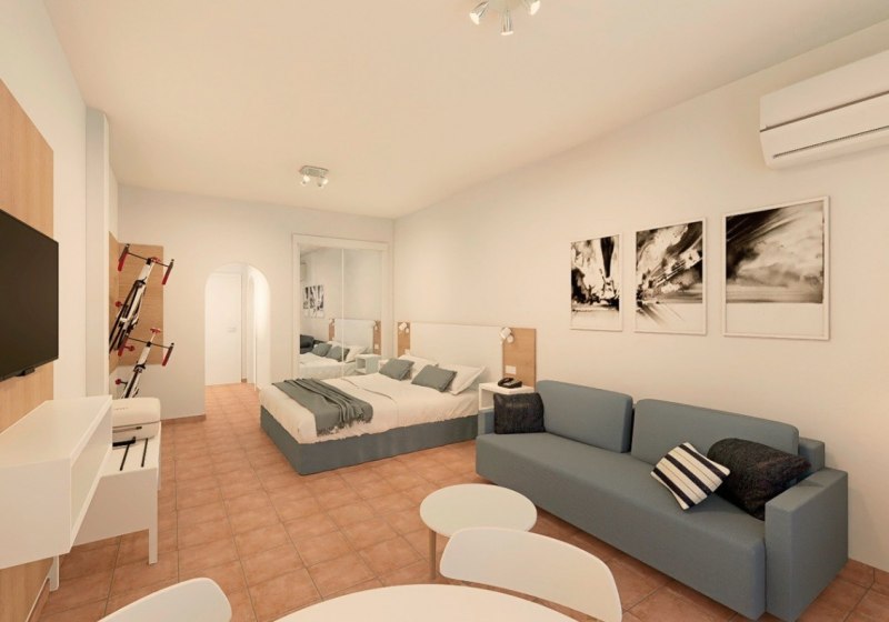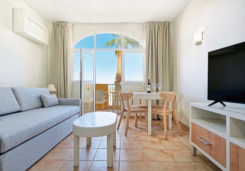 Ihr wohnt wahlweise in Studios oder Apartments. Die Apartments bieten eine Küche und separaten Schlafraum; Studios sind offen geschnitten. Premium Apartments verfügen über Kitchenette, Wohn-/Schlafbereich mit Schlafsofa sowie Dusche/WC. Alle Wohneinheiten kommen mit Klimaanlage, TV, Telefon, Safe und Balkon oder Terrasse.