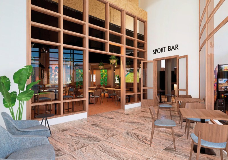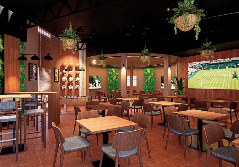 - Aktive Atmosphäre: Sports Bar mit Großbildleinwänden schafft gemeinsames Live-Sporterlebnis.