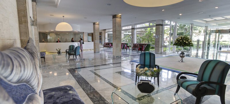 Die öffentlichen Bereiche wirken aufgeräumt und komfortabel organisiert: Empfangshalle mit Rezeption, Lifte, WLAN im gesamten Hotel gratis sowie eine ruhige Bibliothek und eine Internetecke. Tagsüber wie abends erwartet Euch ein Programm aus Animation, Sport und Shows. Wer abschalten will, zieht sich in den Wellnessbereich mit Indoorbecken und Saunen zurück. So fühlt sich Euer Ferien hier gleichermaßen gelassen und aktiv an – ohne Kompromisse zwischen Ruhe, Strandnähe und Unterhaltung.