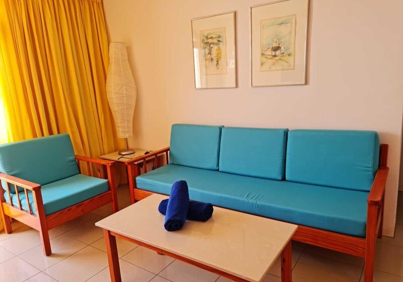 Die Apartments und Zimmer sind auf Funktion und Raumgefühl ausgelegt: separate Schlafzimmer in vielen Einheiten, Wohnbereich mit Schlafsofa, Fliesenboden und Ventilator. Küche oder Kochnische mit Herd, Kühlschrank, Mikrowelle sowie Kaffee-/Teezubereiter unterstützen Eure Selbstversorgung; der hauseigene Supermarkt spielt hier in die Karten. Balkon oder Terrasse öffnen nach draußen, optional mit Meerblick.