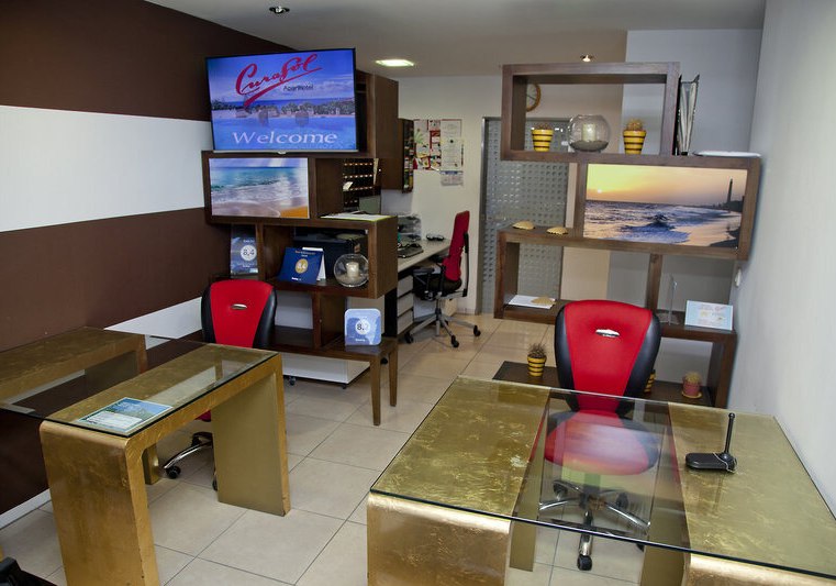 Curasol bietet die praktische Infrastruktur eines erwachsenen Apartment-Strandhotels: 24-Stunden-Rezeption, Aufzug, WiFi, TV-Raum und Bibliothek. Im Außenbereich erwarten Euch Pool, Liegestühle, Sonnenschirme, Sonnenterrasse und Garten. Für Wege und Logistik stehen Mietwagenverleih, hoteleigener Shuttle, Transferservice, Parkplatz und Garage bereit. Wäscherei-Optionen (Service und SB) erleichtern längere Aufenthalte.