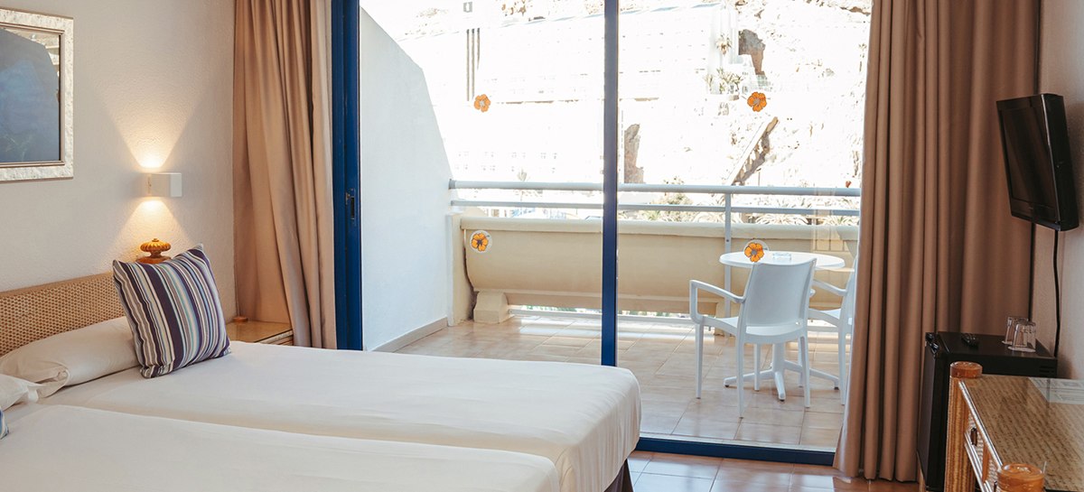 Taurito liegt Euch hier direkt zu Füßen: Über die Promenade gelangt Ihr in rund 200 Metern an den Sandstrand. Die Linienbushaltestelle erreicht Ihr nach etwa 300 Metern, sodass Ausflüge flexibel planbar bleiben. Der Yachthafen von Puerto de Mogán liegt rund 5 Kilometer entfernt; Restaurants am Wasser und die hübsche Hafenarchitektur geben dem Spaziergang ein klares Ziel. Puerto Rico erreicht Ihr nach ungefähr 12 Kilometern, der Flughafen liegt bei etwa 52 Kilometern. Vor Ort punktet die Lage mit kurzen Wegen zwischen Strand, Wasserpark und Hotel. Das Umfeld wirkt maritim und überschaubar, mit Bars, Snacks und kleinen Besorgungen in unmittelbarer Nachbarschaft – praktisch für einen Tag zwischen Pool, Meer und Abendprogramm.