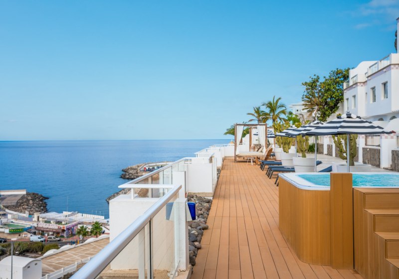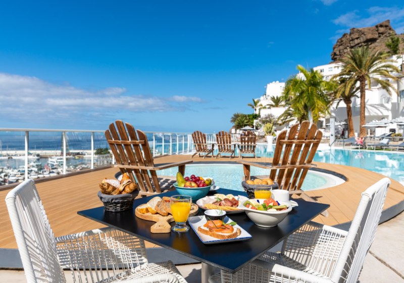 Im Marina Bayview wohnt Ihr in einem Erwachsenenhotel mit klarer Linie: Apartmentkomfort, luftige Offenheit und ein Panoramapool prägen die Tage. Die Architektur bleibt unaufdringlich, der Blick richtet sich auf die Küstenkulisse von Puerto Rico. Ihr startet frei in Euren Rhythmus, frühstückt entspannt und gestaltet den Tag zwischen Sonnenterrasse, Wasser und kurzen Wegen ins Zentrum.