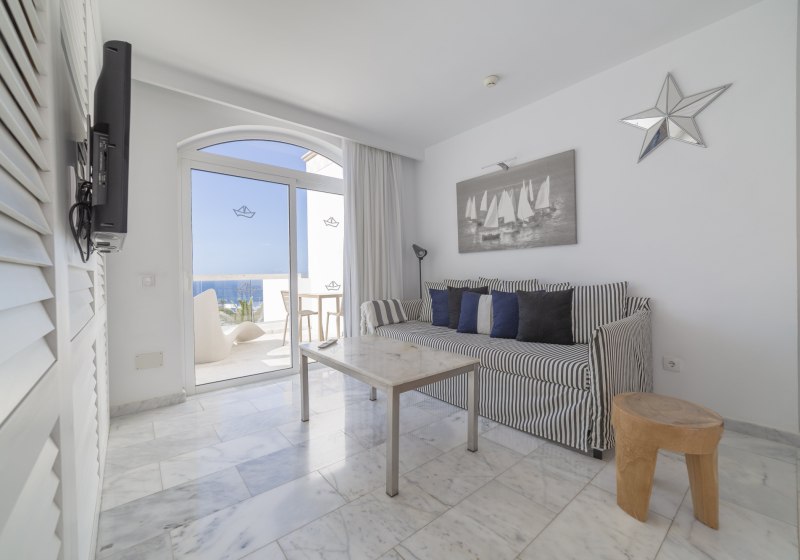 Ihr wohnt in Apartments ab etwa 37 Quadratmetern mit Wohnraum und separatem Schlafzimmer. Die Kitchenette samt Kühlschrank, Mikrowelle und Wasserkocher eröffnet Spielraum für kleine Gerichte. Auf dem Balkon oder der Terrasse genießt Ihr je nach Lage Blickrichtungen bis hin zu Meer, Bucht, Hafen oder Pool.