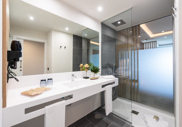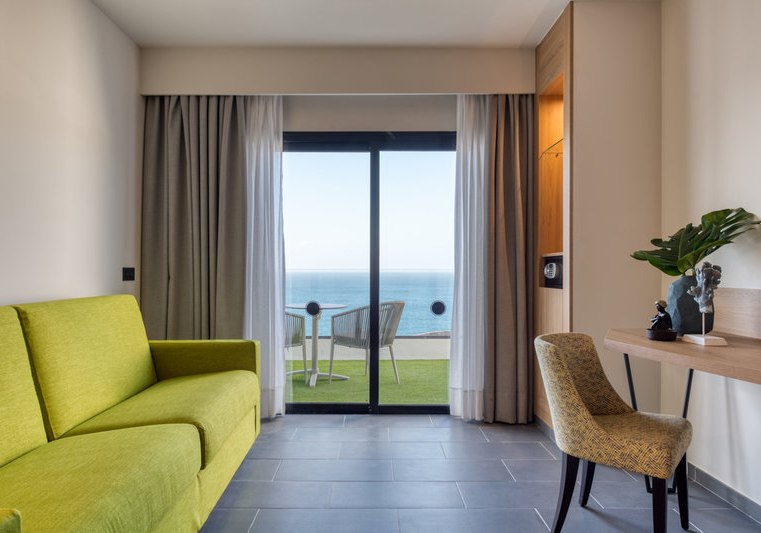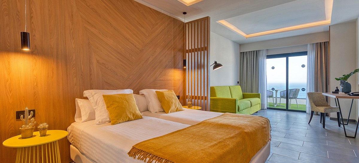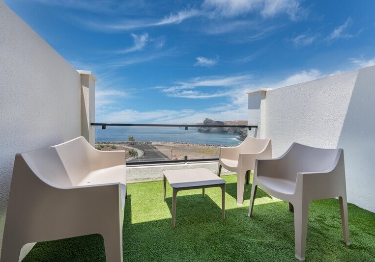 In oberen Etagen öffnen die Doppelzimmer Meerblick den Blick auf den Atlantik und verfügen über Balkon. Die Juniorsuite (ca. 57 m²) ergänzt ein separates Wohnzimmer sowie Balkon oder Terrasse und eine Minibar. Telefon, TV und Dusche runden das Setup ab – ideal, wenn Ihr mehr Platz wünscht.