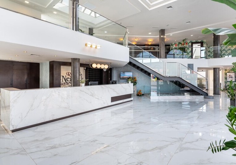 Ihr wohnt in einem Haus mit 140 Zimmern, renoviert im Jahr 2018 und offiziell mit 4 Sternen klassifiziert. WLAN ist inklusive, die Rezeption ist rund um die Uhr besetzt, Lifte bringen Euch bequem zu Euren Etagen. Die natürliche Nachbarschaft prägt das Erlebnis: Ein direkter Fußweg führt zu Meerwasserbecken, während oben die Terrasse den Horizont öffnet.