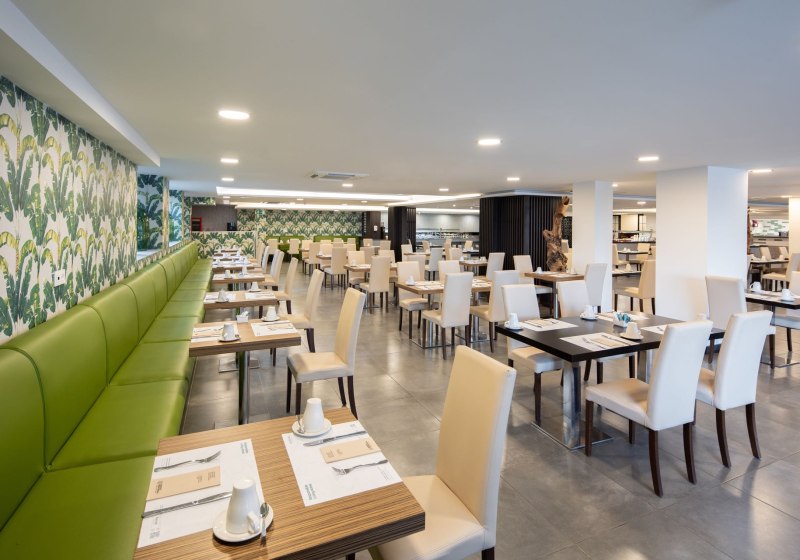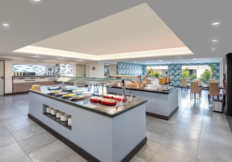 Kulinarisch erwartet Euch ein Mix aus Buffetrestaurant, Pool-/Snackbar und einem Dachterrassen-Restaurant mit Bar. Ihr startet mit Frühstück, stärkt Euch mittags mit Snacks und wählt abends nach Appetit – locker am Pool oder mit Aussichten auf der Dachterrasse.