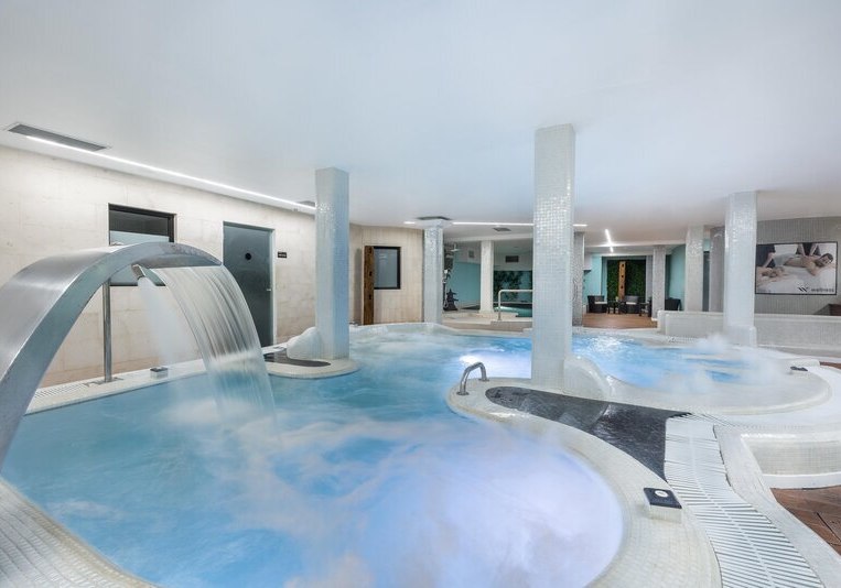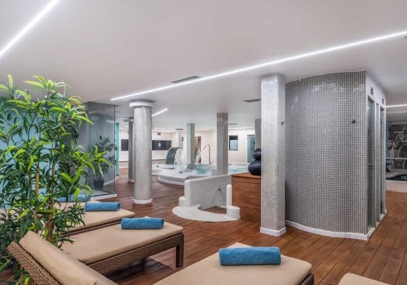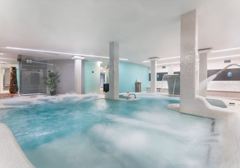 - Spa: Indoorbecken mit Massagedüsen und strukturierter Ruhezone.
