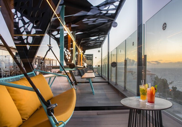 - Dachgenuss: Restaurant mit Bar auf der Dachterrasse und Meerblick.