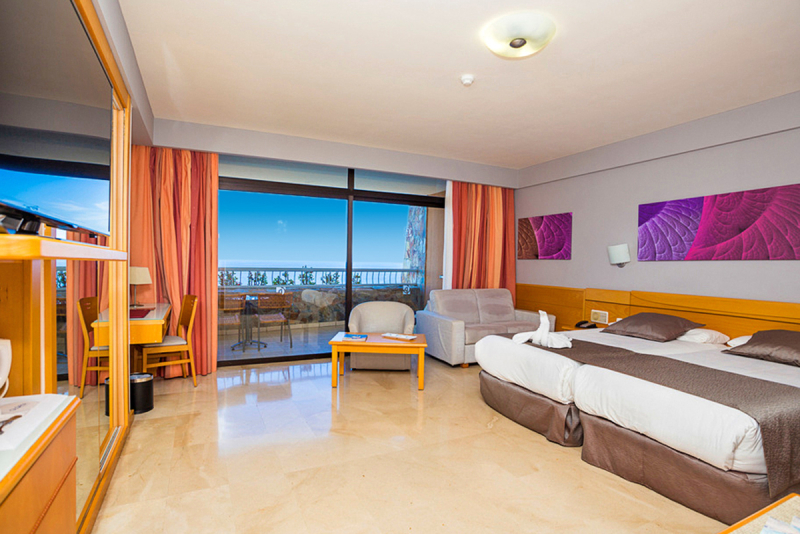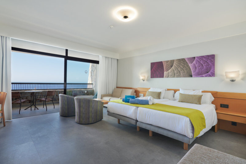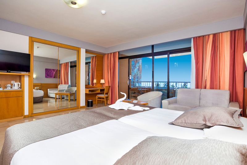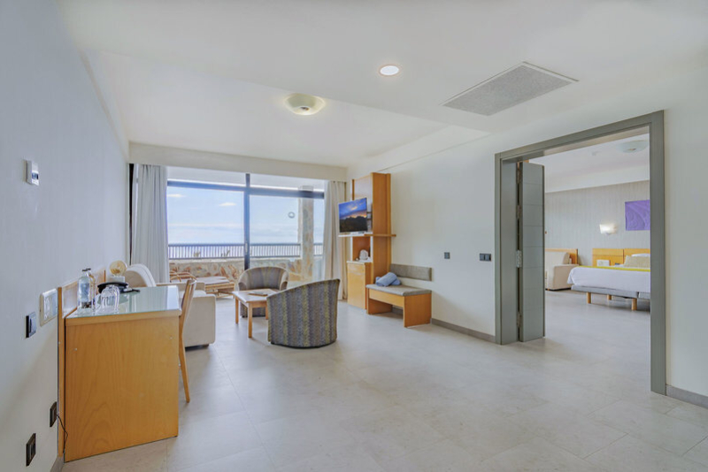 Das Hotel bietet verschiedene Zimmerkategorien, darunter Doppelzimmer mit Meerblick und Doppelzimmer zur Alleinbenutzung, beide mit einer Größe von ca. 47 qm. Darüber hinaus gibt es Doppelzimmer Superior und Suite Meerblick. Die Zimmer sind alle mit einer Klimaanlage, einem Föhn, einem Radio, einem Schmink-/Rasierspiegel, einer Sitzecke, einem TV, einem Telefon und einer Terrasse oder einem Balkon ausgestattet.
