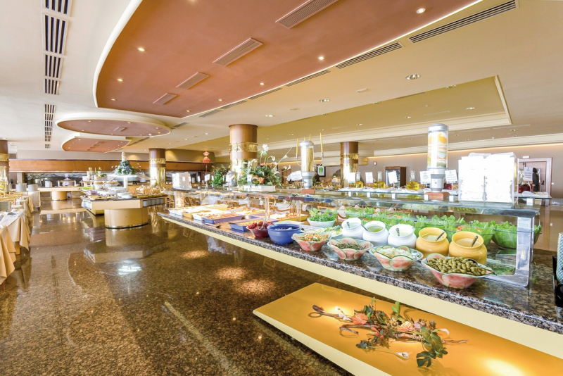Das Hotel bietet Halbpension sowie All-Inclusive Ultra-Verpflegung an, die beide Frühstück und Abendessen in Buffetform beinhalten. Für All-Inclusive-Gäste sind auch Snacks und eine Auswahl an lokalen und internationalen alkoholischen und alkoholfreien Getränken von morgens bis spät in die Nacht inbegriffen.Ausstattung
