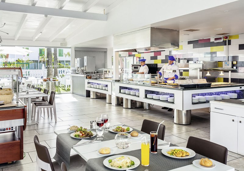 - Buffet & Live: Buffetrestaurant mit Live-Kochen laut Angabe der Verpflegung.